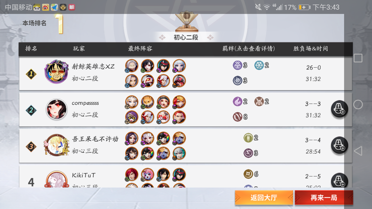 感觉阵容一般,可能是运气好或者段位太低???🍒( •̥́ ˍ •̀ू )但是无伤吃鸡还是值得炫耀炫耀滴,啊哈哈哈~(ಡωಡ)hiahiahia😜