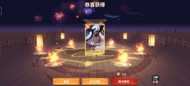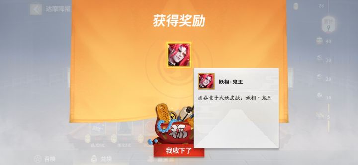 今天樱子送了个金达摩,然后出了个大妖!!!!大妖!!!茨木!!!我可以!!