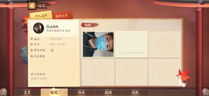 给大家介绍一个在少允段拿首无摆烂的fifth面板如图,伤害甚至还比不过鬼切,对着开眼百目鬼直冲,拿点人头就非常自信死对面人堆里的41胜率首无,外附他自己上传的主页照片,也不知道打得那么烂为什么还敢放自己照片上来,可能这就是fifth的自信吧。😑
