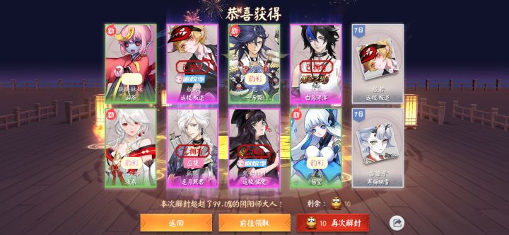 虽然说是超过了百分之99的玩家。但是感觉亏亏的,没有50达摩币(一个史诗皮肤40好像还能接受),而且这里除了乐队妖狐是送的,其他都是之前开达摩的时候礼盒送的。平安京你真的我哭死
