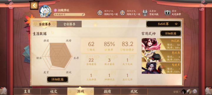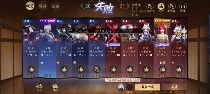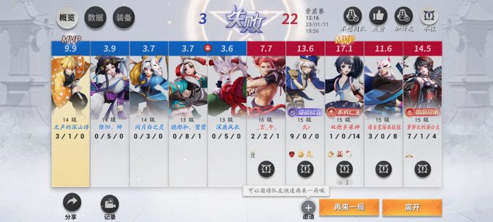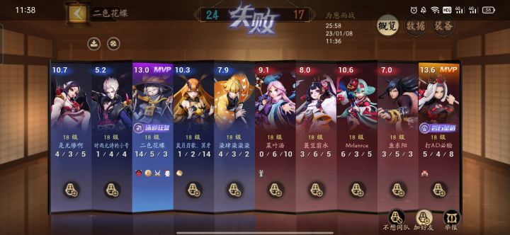 一晚上17场资质赛15胜2负9局MVP,1局SVP12局不灭仁王,3局无刀仁王13击杀,16死亡,247助攻,场均助攻14.5。然后评分倒扣0.4(˃ ⌑ ˂ഃ )你游的综合评分计算机制对辅助真的是太友好了\(`Δ’)/
