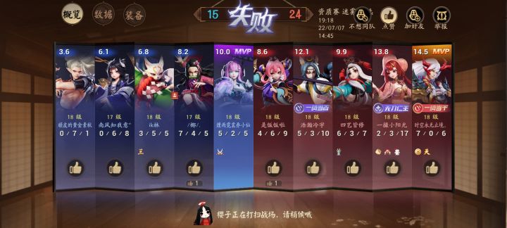 好怪啊,我逢魔玩辅助虽然最后输了但我分数不是垫底,但是还是被举报了说我消极战斗。没人救然后被仨俩式神卡墙缝里嘎嘎杀为啥说我消极战斗。