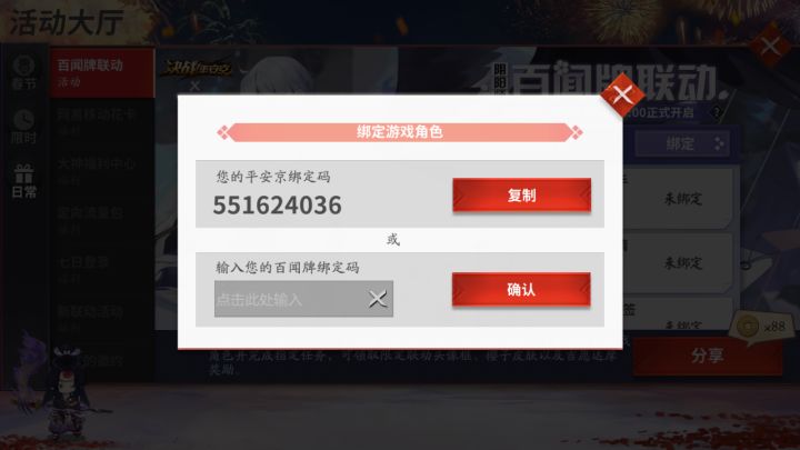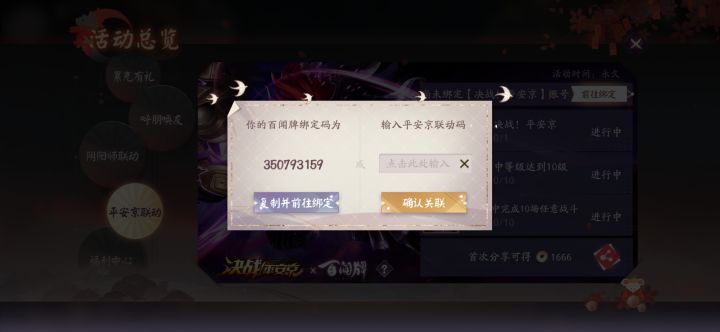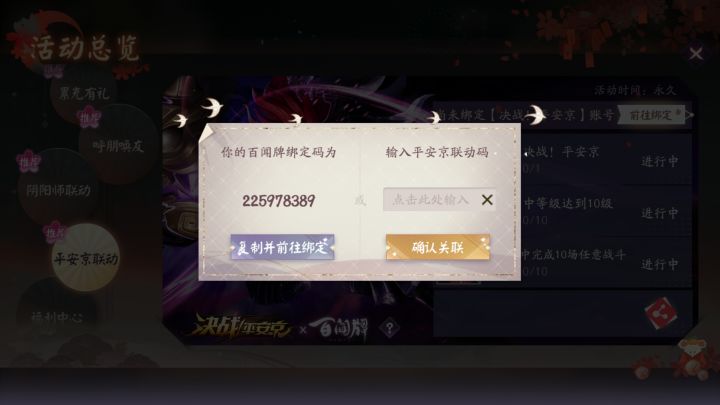 百闻牌和平安京联动有大佬联动码愿意给我蹭下么,求助
