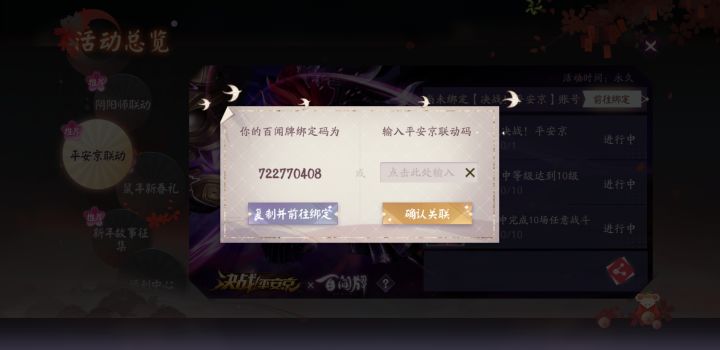 百闻牌玩家求一个平安京联动码啊