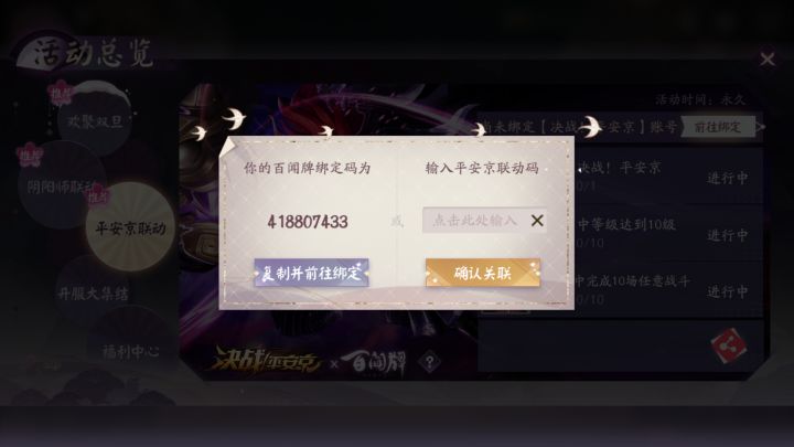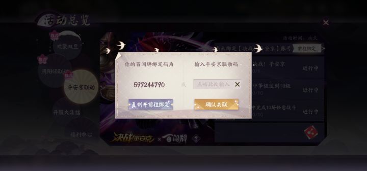 百闻x平安京联动互绑