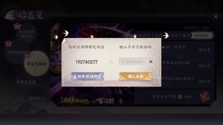 求联动码!有玩平安京的大佬但是不准备玩百闻牌的吗?卑微手残党求互换联动码!