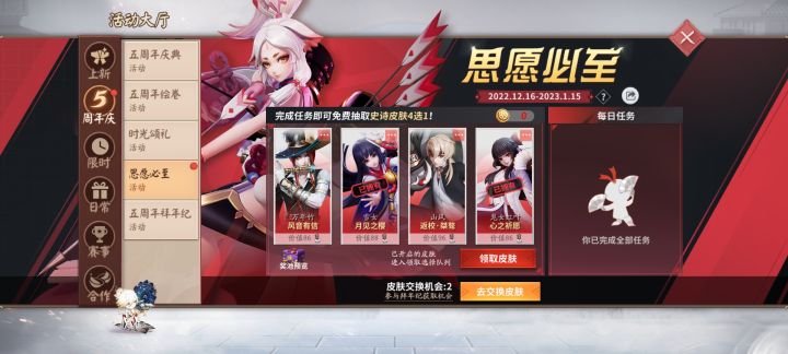 刚回坑,本人不玩妖刀,想用神罚之光,换个御馔津的赤乌祓厄,有想要妖刀皮肤的欢迎call我😘