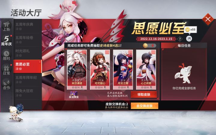 有要换的嘛,我也不知道想要啥(可能想要妖狐乐队皮)