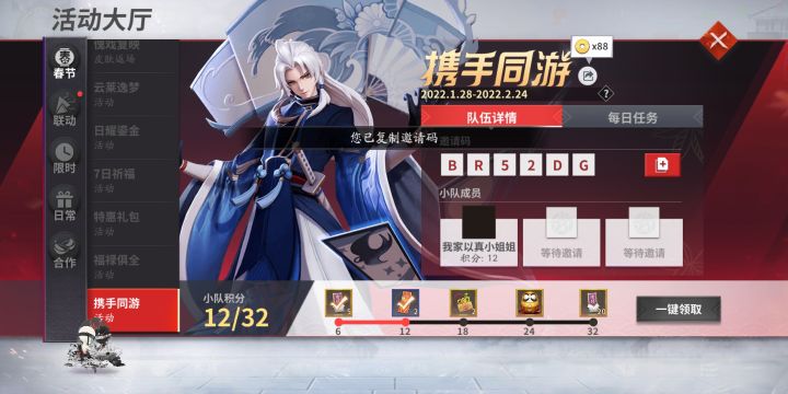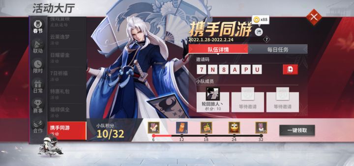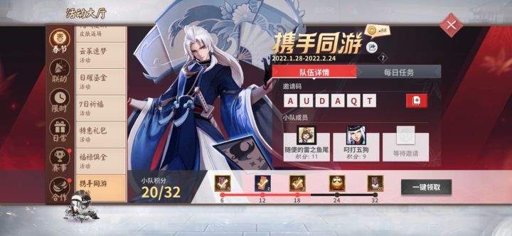 有没有回归的小伙伴,来加个队伍亲爱的阴阳师大人~好友【我打路人】向你分享了一份平安京神秘大礼!赶快复制密语Z8TMG6,打开游戏拆好礼啦!