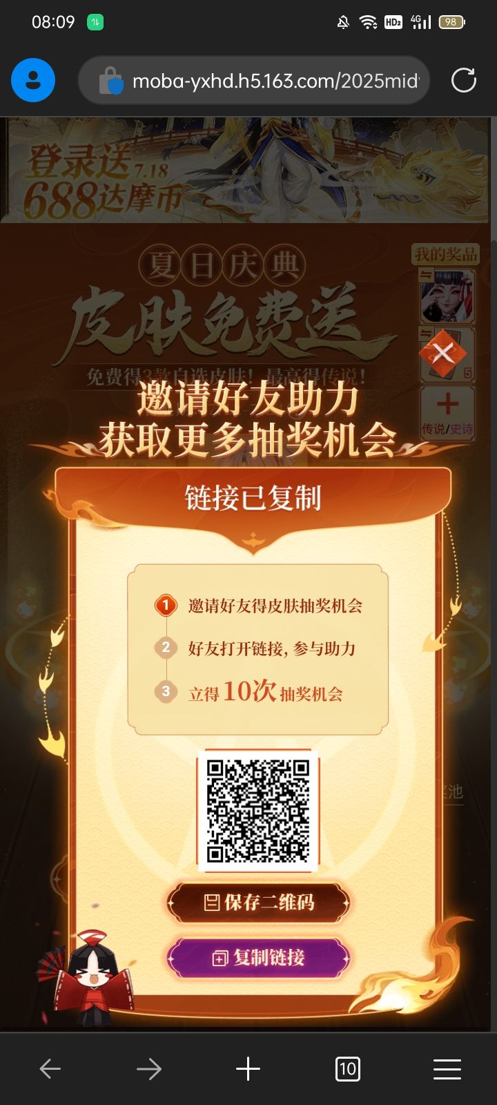 【决战!平安京】参与活动免费自选三款精美皮肤喔! https://moba-yxhd.h5.163.com/2025midyear/redirect/F17C083F?channel=netease&sharer=5a5f2c38ed63806e688ead52 点击链接直接参与,速来#决战平安京