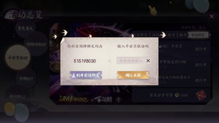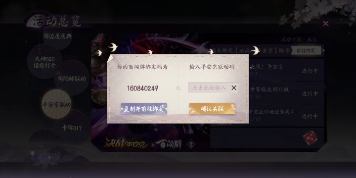 百闻牌联动的来这儿,我平安京还没绑