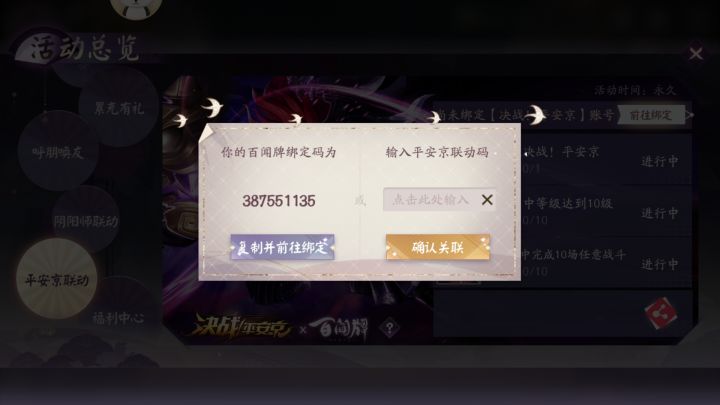 求个平安京的来互绑百闻牌!本人不玩平安京,喜欢百闻牌,希望来个平安京的来互绑!互绑码在下面,谢谢! 387551135