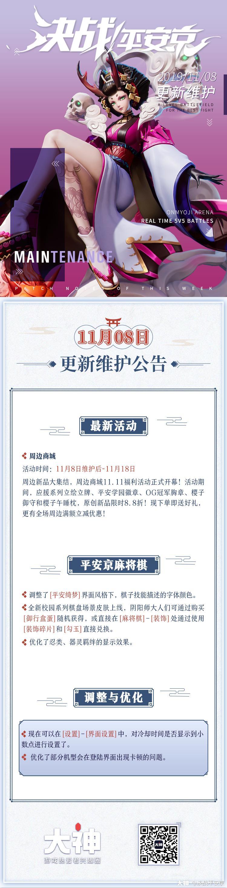 ☆维护公告☆亲爱的阴阳师大人:现奉上《决战!平安京》11月22日更新维护公告。