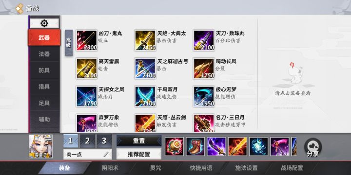 封魔只会玩这三个 鸦天狗走线就第一件金身/三日月,我一般金身很多玩意六级爆发是不低于鸦天狗的,然后双镰刀大吸大穿乌丸,反正冷却鞋得出,要冷却,金身有了不需要肉度只要金身和击飞期间对面死了你就是最能抗的,后期十几秒一个大无缝打团 惠比寿我走冷却的,能钩的次数多,走移速的等冷却好难受 荒就金身起手然后堆冷却吃满星