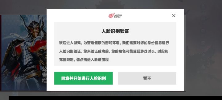 刚登录就要人脸识别OK啊没事,但是你根本不让我识别呀!我一直点的同意允许下一步,结果就是那个识别拍的时候根本拍不了,全黑,一点看不见,然后再试一次就是卡死,没响应,根本玩不了,服了服了