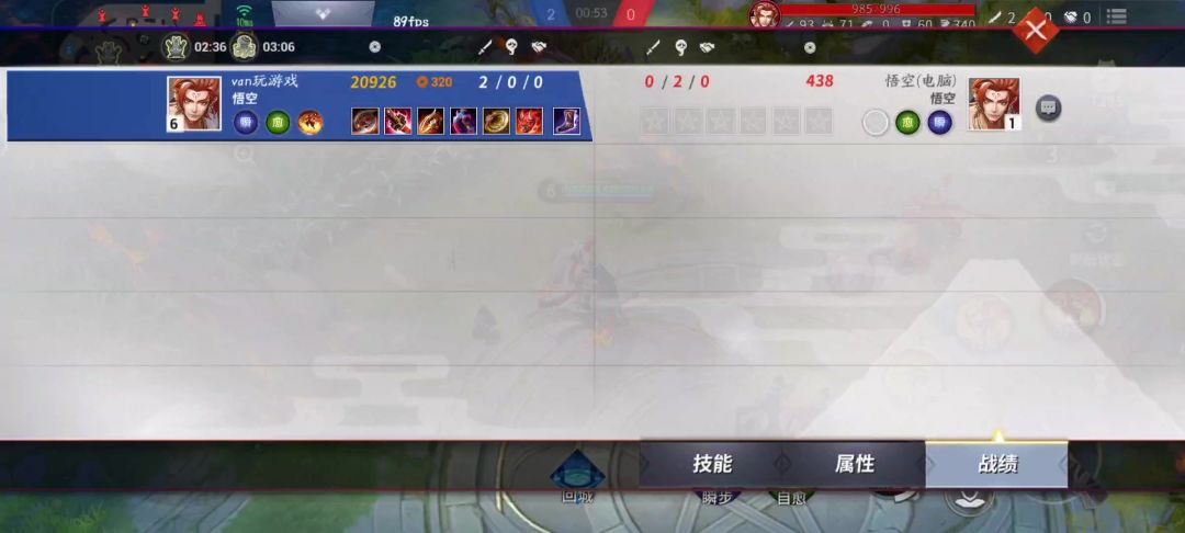 悟空用4技能砸处于3技能状态的悟空后,会使自己定在原地完全无法操作 最后只能退出解决。