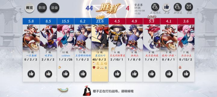 之前每次回来一段时间,然后受不了他动不动关键时候420给你来一下的这个b环境,就退了挺久,最近看有联动就下来回来。现在和以前相比,420频率少了很多,大概从一局420四五次变成一局420两三次这样了,有很大提升,我可以忍他一会儿,但是平安京很喜欢得寸进尺。昨天打了一把狭间,做个活动任务,没想到平安京给我最后一波团的时候,给我420卡了整整5秒,没我在,团战果不其然的输了,然后没想到的是我已经懒