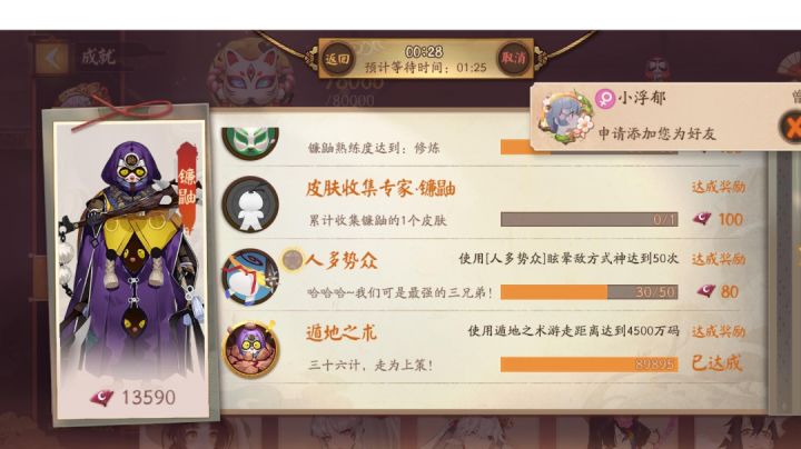 我前几天打百鬼奕用了一把镰鼬,成就直接就满了。我之前基本没玩过镰鼬。