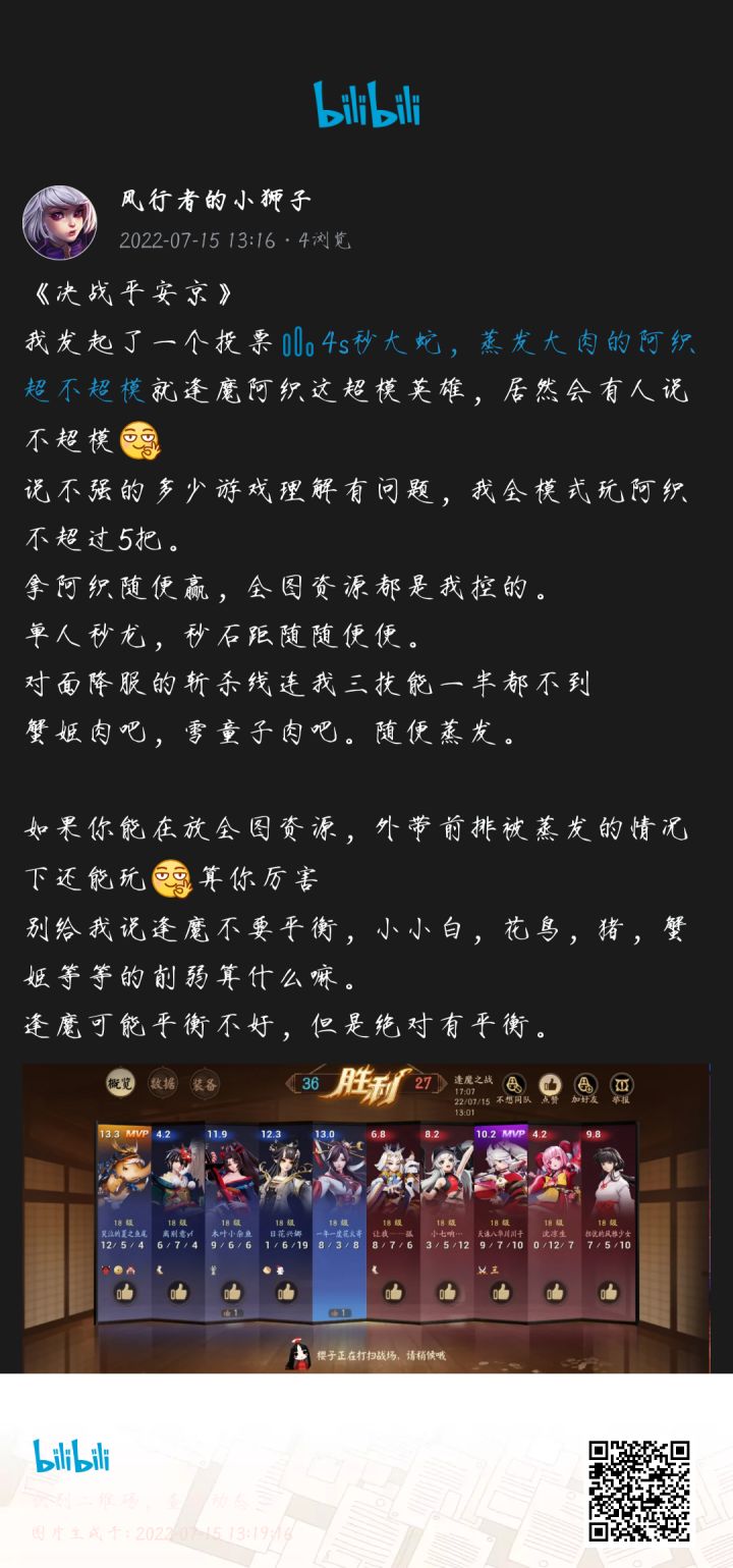 就逢魔阿织这超模英雄,居然会有人说不超模说不强的多少沾点,我全模式玩阿织不超过5把。拿阿织随便赢,全图资源都是我控的。单人秒龙,秒石距随随便便。对面降服的斩杀线连我三技能一半都不到蟹姬肉吧,雪童子肉吧。随便蒸发。如果你能在放全图资源,外带前排被蒸发的情况下还能玩算你厉害。