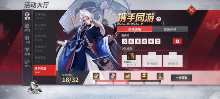 有没有可以填码的朋友,算上今天每天做任务到24号正好能拿到皮肤券😃亲爱的阴阳师大人~好友【无聊的。,。】向你分享了一份平安京神秘大礼!赶快复制密语KN9GVC,打开游戏拆好礼啦!