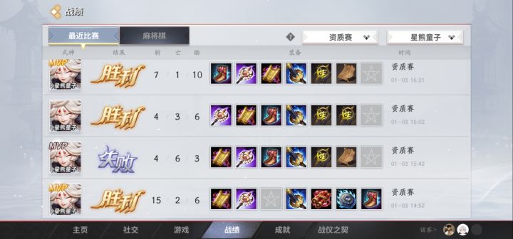 这游戏为什么没人喜欢打野?还有人说星熊很弱的,不过连续两天资质赛超过30局,我试过预设主中副野,中下野,以及全能,结果30多局全玩的星熊打野。基本拿了15局以上MVP吧(败方MVP占多)。这局被队友演了,彼岸花一直在线但一直不放技能不普攻就在那儿转,下路和上路都没拿到优势但一直住那里不带动的,中线全是我吃的。补。截取了大允后资质赛部分比较好的战绩(毕竟我玩还不到七天,有一些局确实没玩好,给省略了)