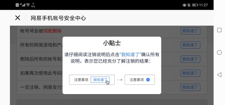 我想注销账号,但是到了这个界面就蹦出个小贴士,怎么点也点不掉。。。请问怎么把他点没?