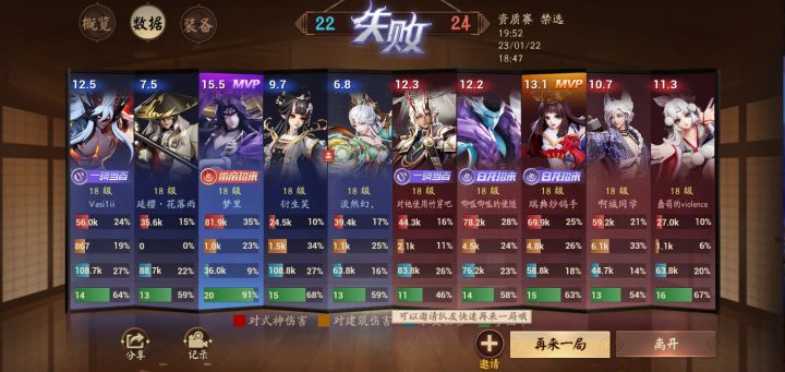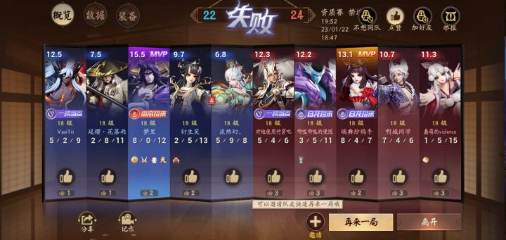 真的累,一天匹配到的开黑的又菜又爱玩,有把资质匹配的红叶开黑的0-5-6,这是游戏内看的,结束战绩更拉,助攻都是大招拿的,还说不得他,我刚收的号,你游真是想让人退游说实话,大年初一搞这出,我晋级赛晋级了两次,把把都输那么个三局,我c了,我输了,我今天迷上大舅了来着,把把我c,把把我输是吧,你说说我还要晋级要玩嘛?晋级失败要重新打赢一局,还要再打赢三局,这瓜皮队友能支撑我打连赢三局?我好累