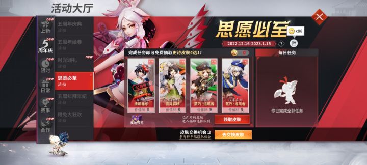 问一下,刚玩这游戏元意识什么时候返场,我想买妖刀和鬼切