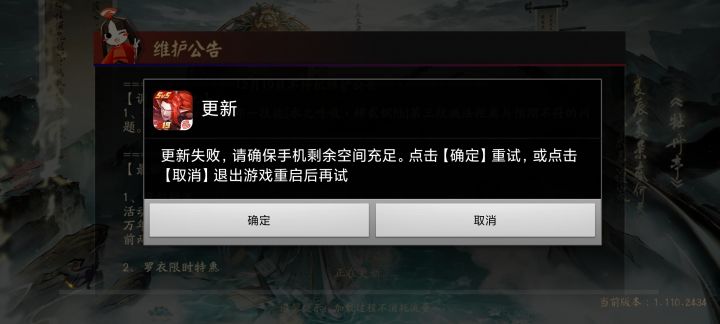 手机还有几十g 就是显示内存不足 昨天晚上还玩了 今天就进不去 大佬救救