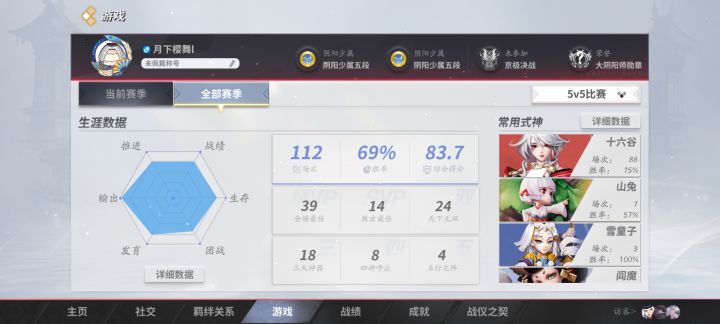 回游玩家,上一次正经玩平安京还是20年,别的moba不喜欢,但是又只会打打moba,所以回来玩扒鸡了之前是打王者的,赛季中后期能打个1600左右,也是只玩射手。现在打扒鸡,刚刚到大允最低段一颗星,实力应该在中司这样,意识就别提了,单是下路的新式神都认不全。希望有个队友带我熟悉一下平安京现在的环境,不限段位和位置,模式也不限,资质赛、匹配、百鬼奕都行。目前会玩妖狐,怎么也能有及格线的输出。鸩
