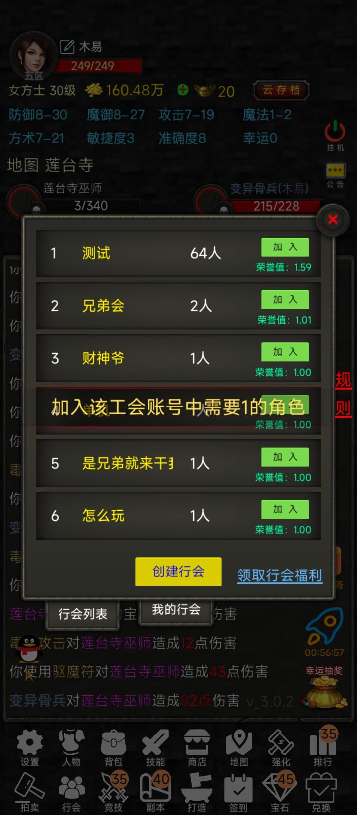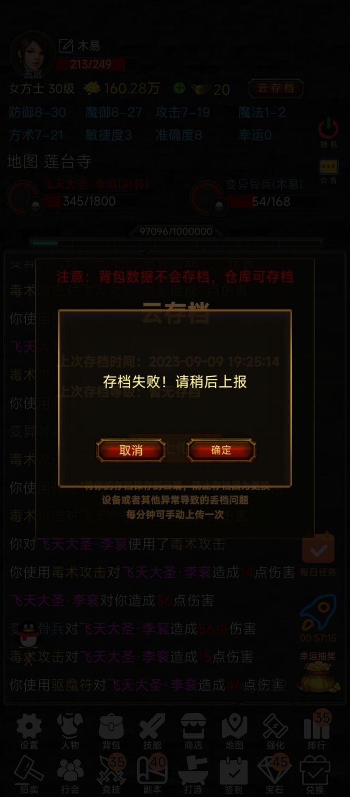 存不了档加不了行会