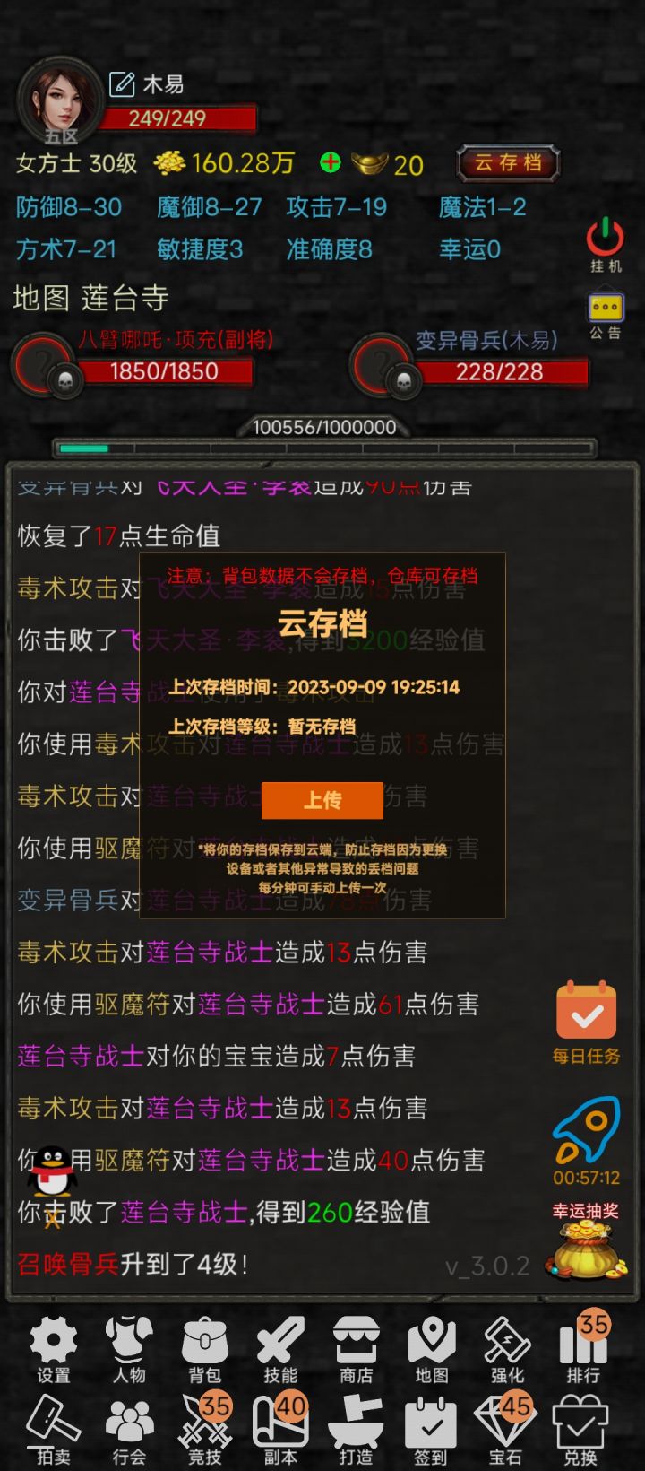 存档互吃,一战一法一道,直接变两道一法,等级装备直接没了