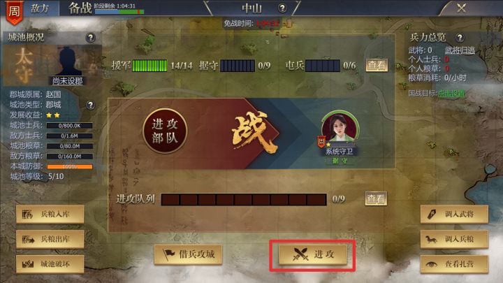 目标城池有己方的士兵,和自己的武将就可以攻城啦!攻城为队列模式,选择自己的队伍,点击【进攻】,加入进攻城队列就可以了。之后您可以去执行其他的操作,不用一直等待;也可以点击观战进行支援鼓舞,或者是指挥当前部队,展现自己的华丽操作。