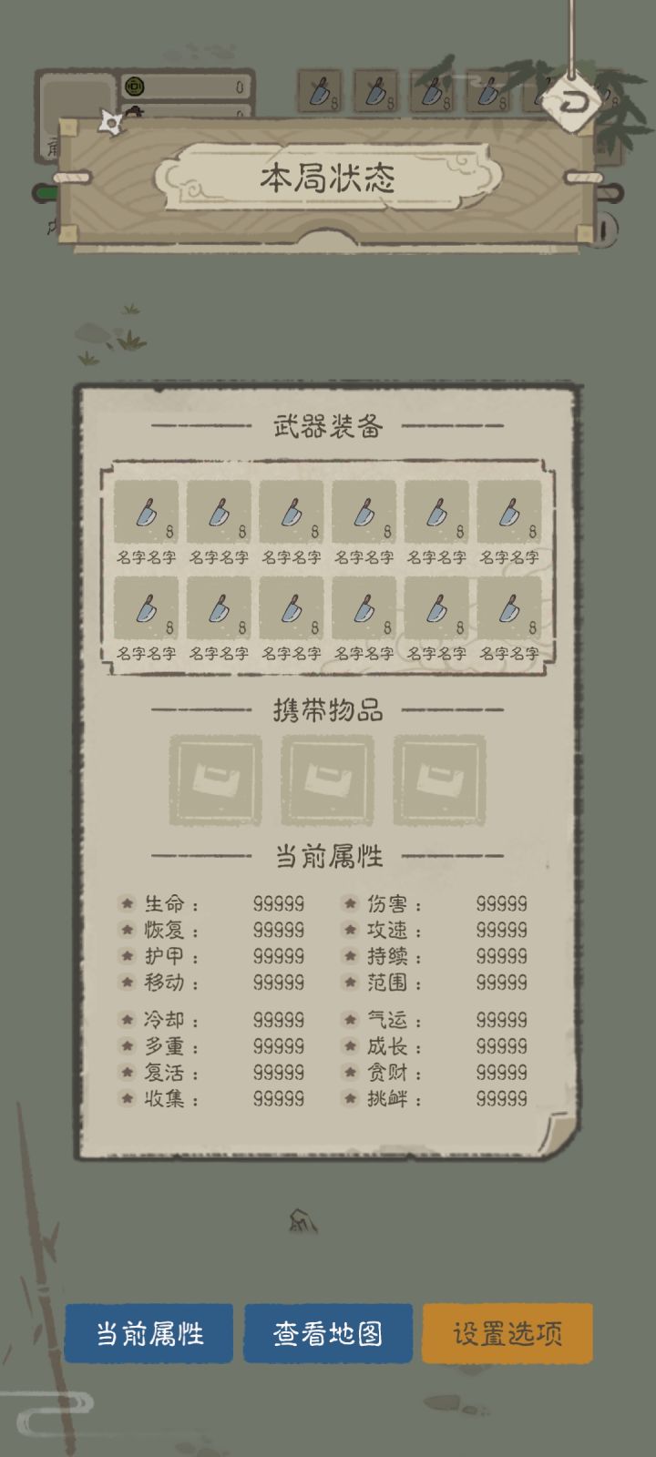 无论是游戏模式还是武器类型跟吸血鬼幸存者都存在太多相似点。比较两眼的是画风比较有意思。