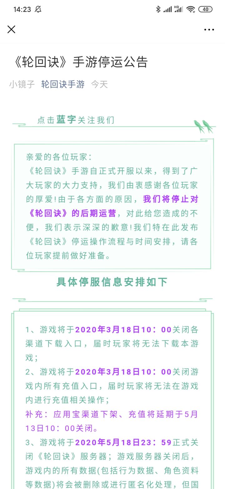 我想问问是要停服了吗?刚才看到微信公众号说要停服了,来问问是不是真的