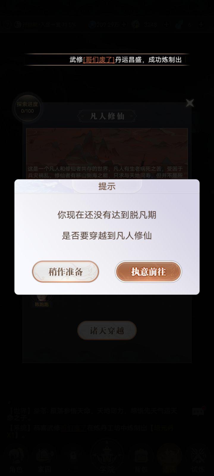 开局天赋:仙人转世 系统傍身 魔神转生/可换3主流:拳 剑 刀拳:群体攻击/近战/爆发(比较适合新人)剑:单体攻击/远程/消耗(比较吃养成)刀:范围攻击/远程/爆发(前中期比较强)前期跟主线推剧情这个时候不用做别的事情修炼到刚柔一重,用送的扫荡卷把试炼5 6 7扫荡一遍,用这些材料去练丹提升一波属性。修炼到刚柔巅峰的时候,一定要把加修为丹药吃满30次突破会刷新次数不要浪费修为篇后