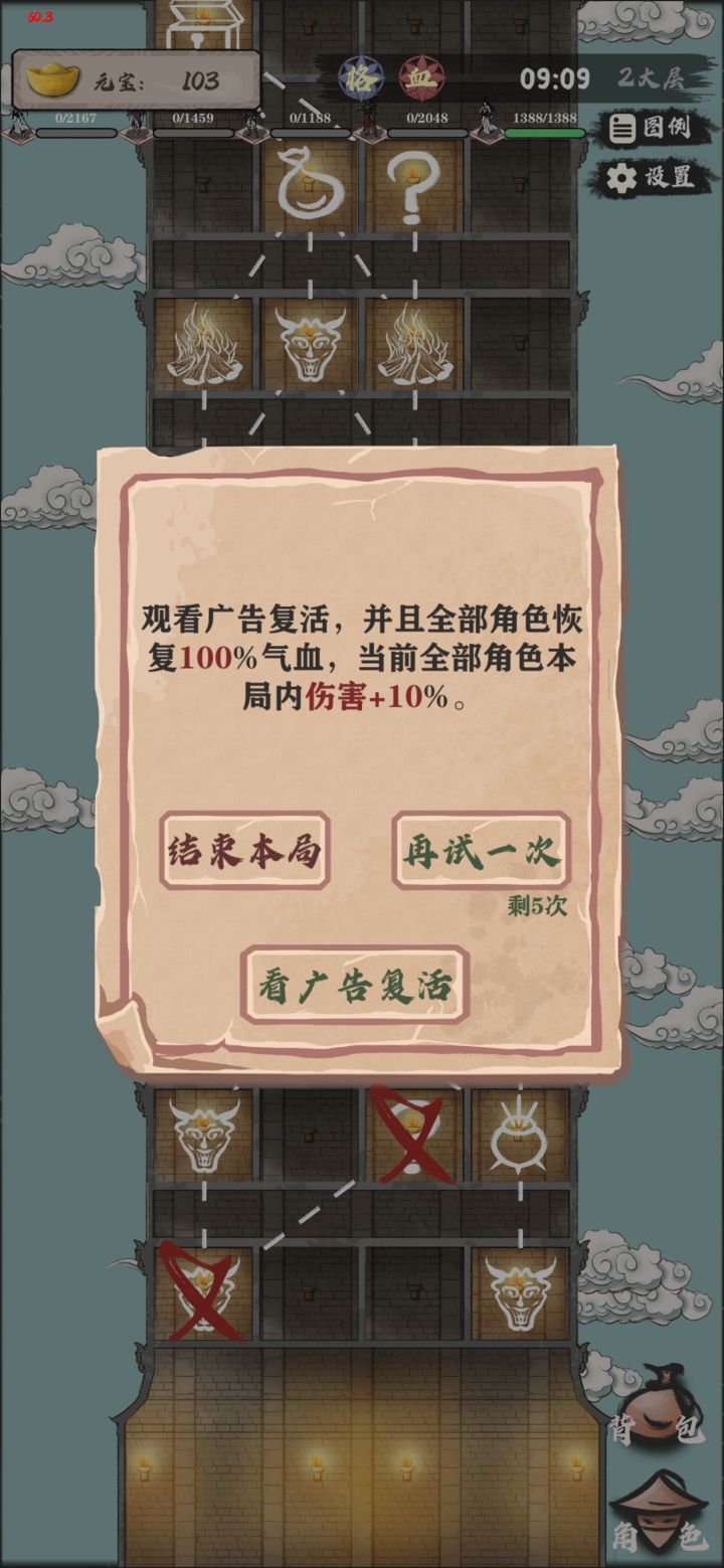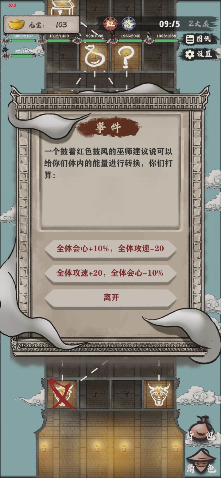和镜像怪疑似同归于尽后(但是看起来最后一个遗留的怪是丝血镜像召唤物)回到选关页面但是探出失败动画;选择再试一次,但是弹出的是下一个奇遇事件的页面;于是继续下去,到进入下一个战斗事件时发现之前在镜像怪页面进行的各种升级没了(再试一次的那种状态)