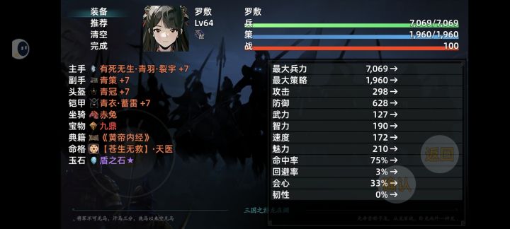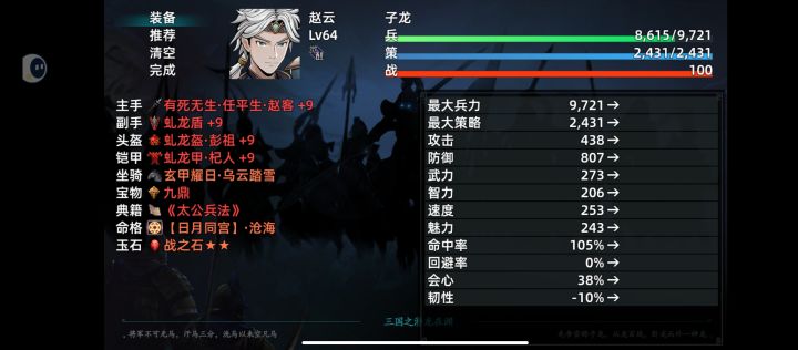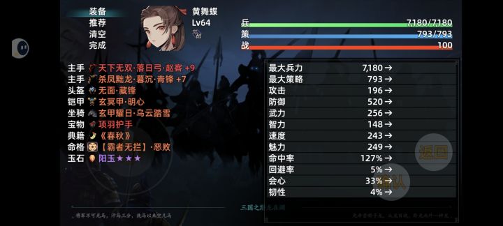 游戏数值把控还是很厉害的,全程困难模式,结果除了任务八礼之外,其他的属性药淬体丹包括升级丹,一颗没吃,连彩色武器也忘记打造,不知不觉就通关了。首先说几个要点:1、前期加点可以一半一半, 赵云半武力半洞察,保证基础伤害的同时还能拉点命中和会心; 飞燕半洞察半速度 罗敷半智力半速度等等, 主要目的就是前期面板低,还是需要多保持基础数值,等到了后期再去用忘川水洗点,赵云洞察拉满、飞燕速度拉满