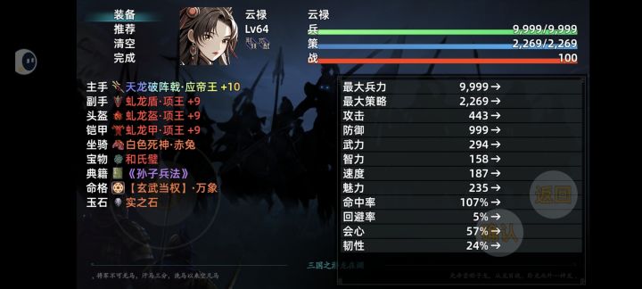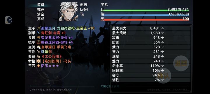 隐逸阵,赵云和罗敷加筋骨,其他两个加身法,张燕带 其徐如林,黄舞蝶带霸者无拦