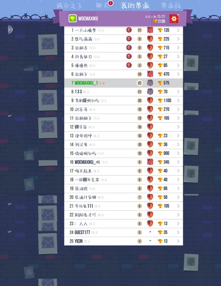 帮派成立时间很早,也是吃到了开服红利,但后续新鲜血液注入不足,帮派战都不好打,所以欢迎大家加入!#喵星大作战国服