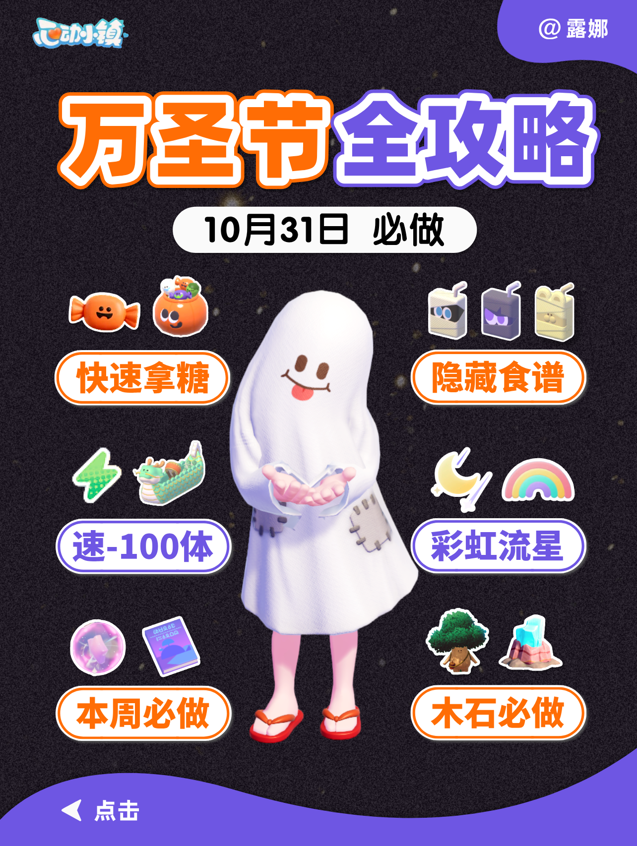 溜溜木和萤石都在12 来看看今日上线的万圣节活动注意事项吧! 共3个食谱,注意讨糖+拿罐子次数加一起每天最多共5次 #心动小镇 #心动小镇攻略