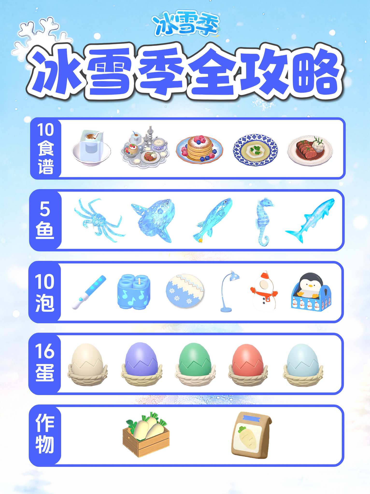 冰雪季 全图鉴攻略 食谱 冰晶鱼 价格表