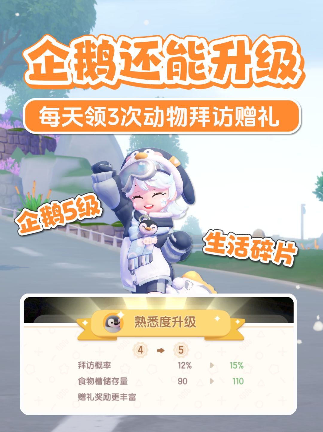 好消息!企鹅还能升级!每天刷动物拜访赠礼!生活碎片功能