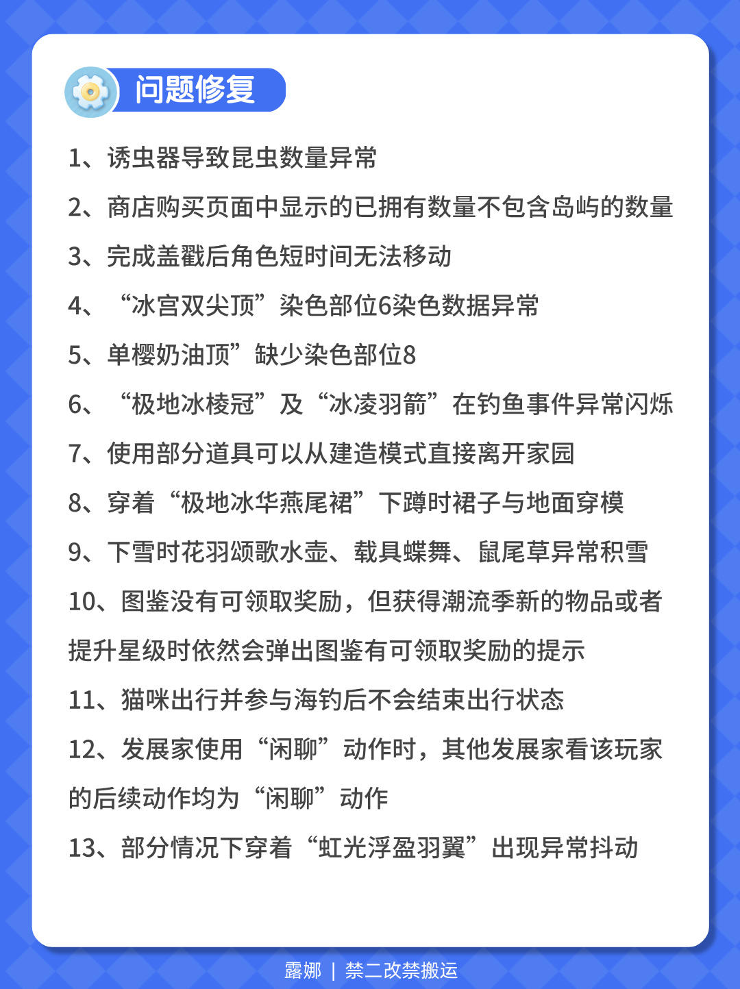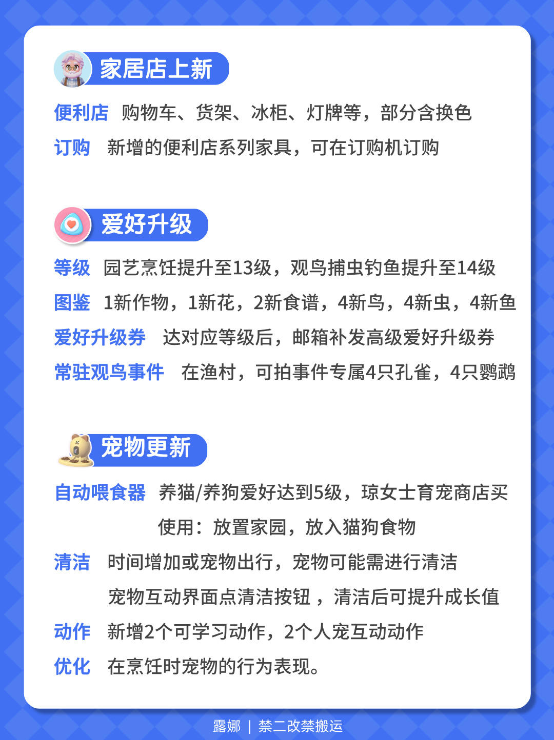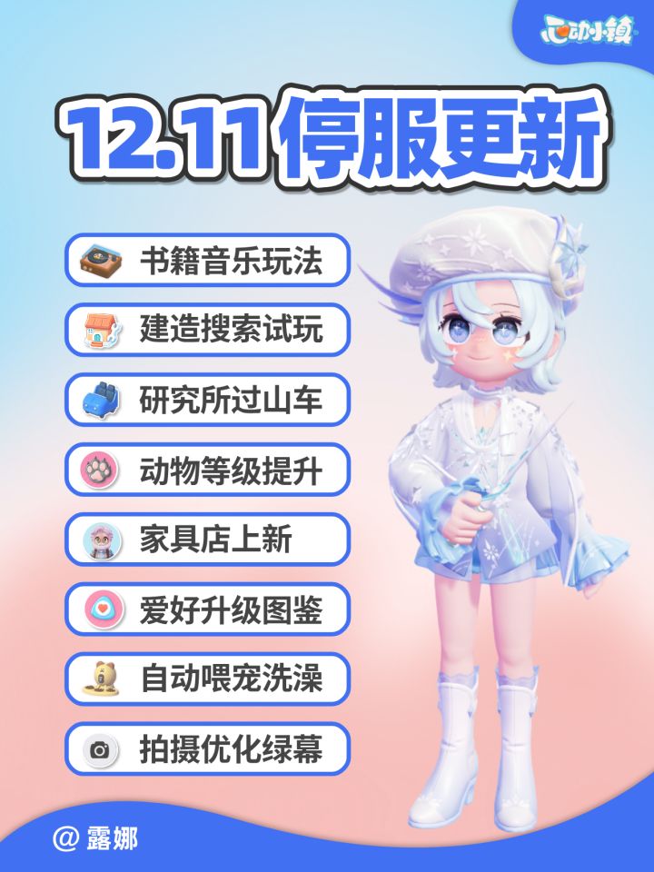 【天气预告】 今日:晴天 周四(明天):彩虹天🌈 周六:流星雨💫 【12.11更新亮点】 1、建造建材搜索和样板 2、过山车建材 3、宠物自动喂食和洗澡 4、写作和唱片 5、爱好等级提升 6、波叔样板间、绿幕上新 即将上线:双诞活动、更多留声机和节拍器 【资源位置】 橡树:3三家园门口 萤石:7号家园门口 #心动小镇 #心动小镇攻略 #心动小镇甄嬛传联动 #心动小镇创作家激励计划