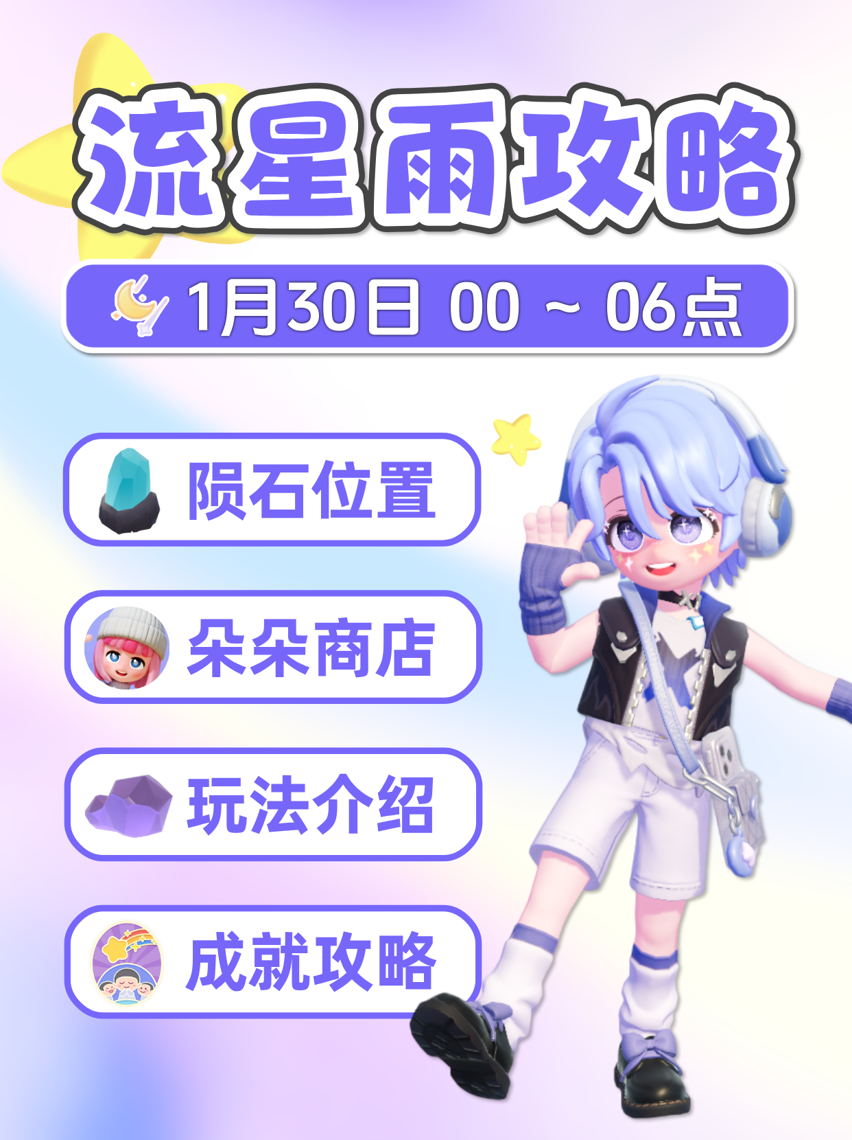 星陨矿石可敲时间 1月30日 00:00 ~1月31日 00:00 朵朵位置:温泉巴士站遮阳伞1月30日 早6点离开 Meteor shower Guide #心动小镇 #心动小镇攻略 #heartopia #发现好游戏