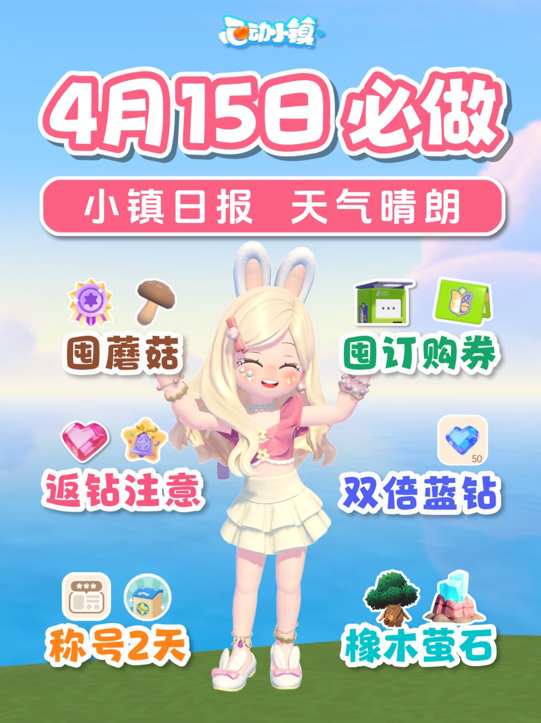 4月15日囤蘑菇 返心钻 春野令返场 双倍蓝钻