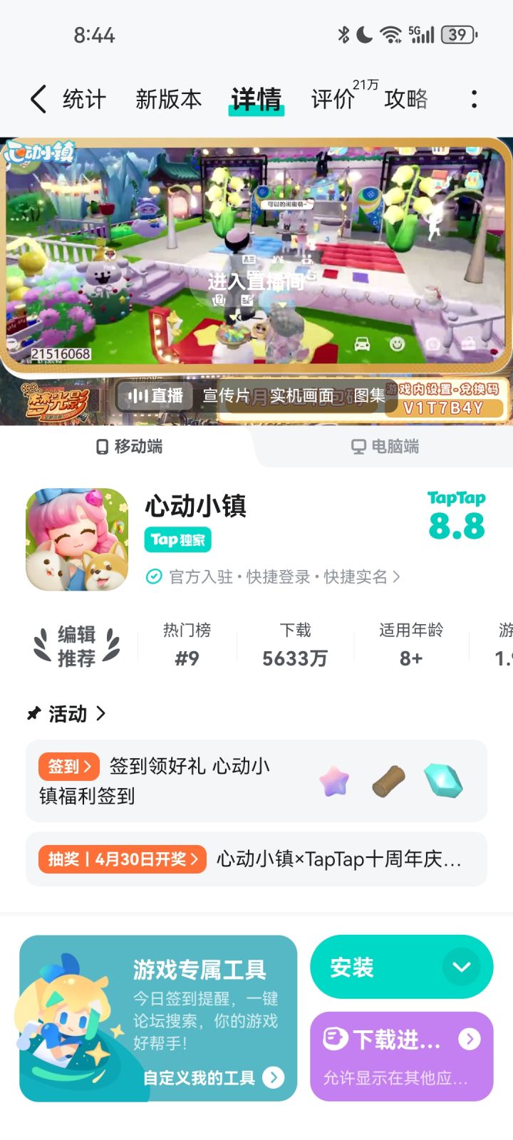 我下载那个心动小镇,然后我点那个安装,然后那个原本要显示安装好,然后突然给我退出了那个安装的。那个标就一直有那个小点点在跳,后面跳了不跳了。然后我重新进来,又得重新下载
