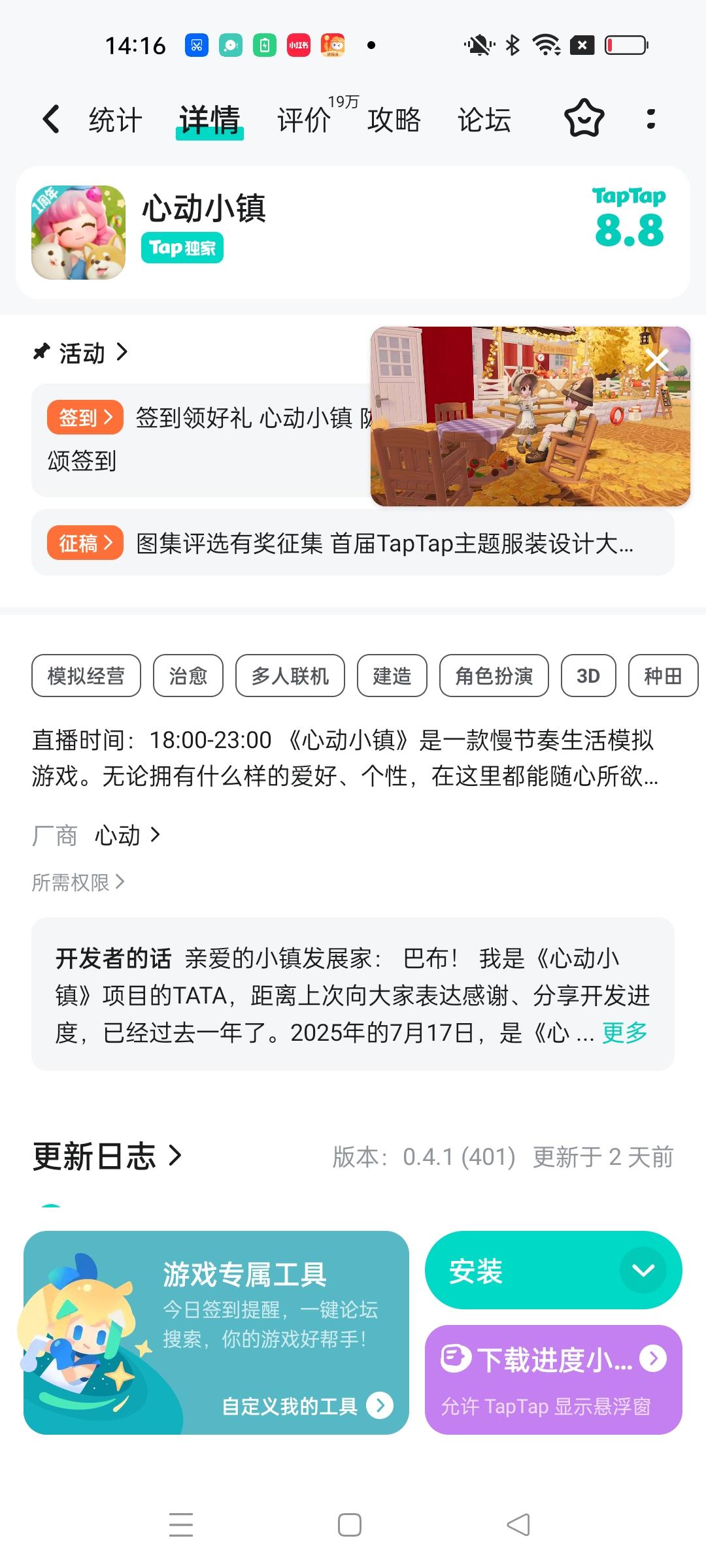 家家人家人们谁懂,心动小镇。我整整下了8天。还没有更新,你什么意思啊?官方请你出来跟我说一下。