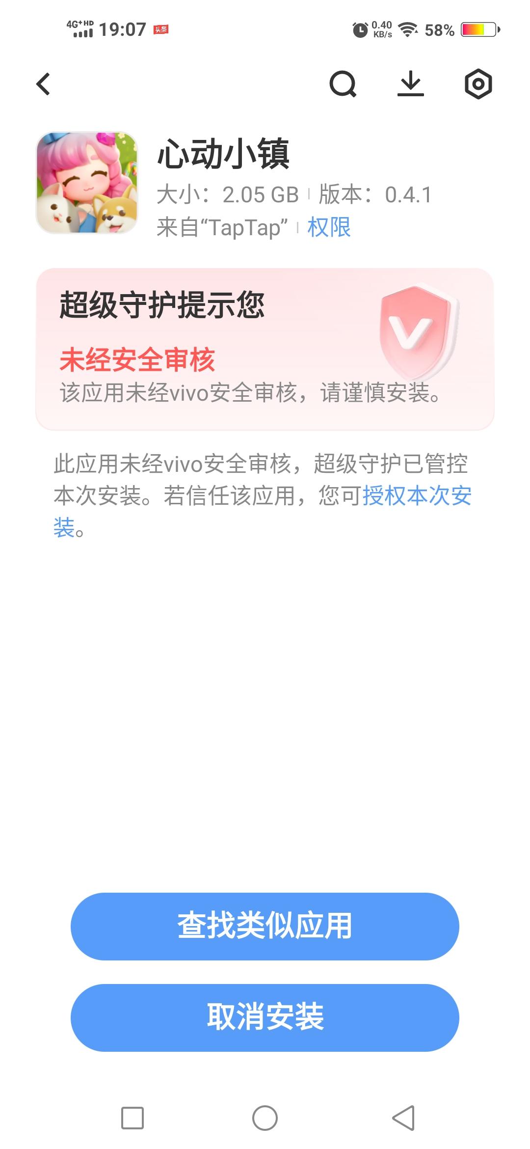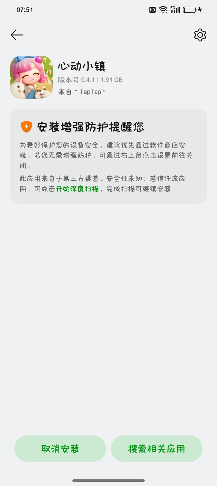 我准备下我准备下载这个心动小镇,也就是安装,安装的时候他给我一个取消安装和一个搜索相关内容,我点了取消安装,我就玩不了了,我点了搜索相关内容,我下载了其他游戏,那我这个心动小镇我也玩不了,我在别的也找不了行动小镇,我正我就是玩不了了