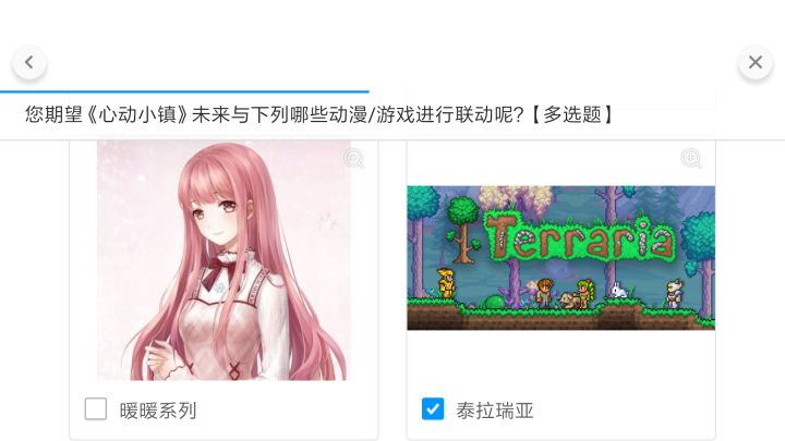 感觉这是所有提名里最容易实现的吧,毕竟都是心动的没什么麻烦事。只是联动什么呢,怪物,骷髅,克苏鲁什么的放进小镇是不是不太合适…放进些npc?还是单纯的放些装备配饰?总之不管怎么样,我都是狠狠的期待上了!